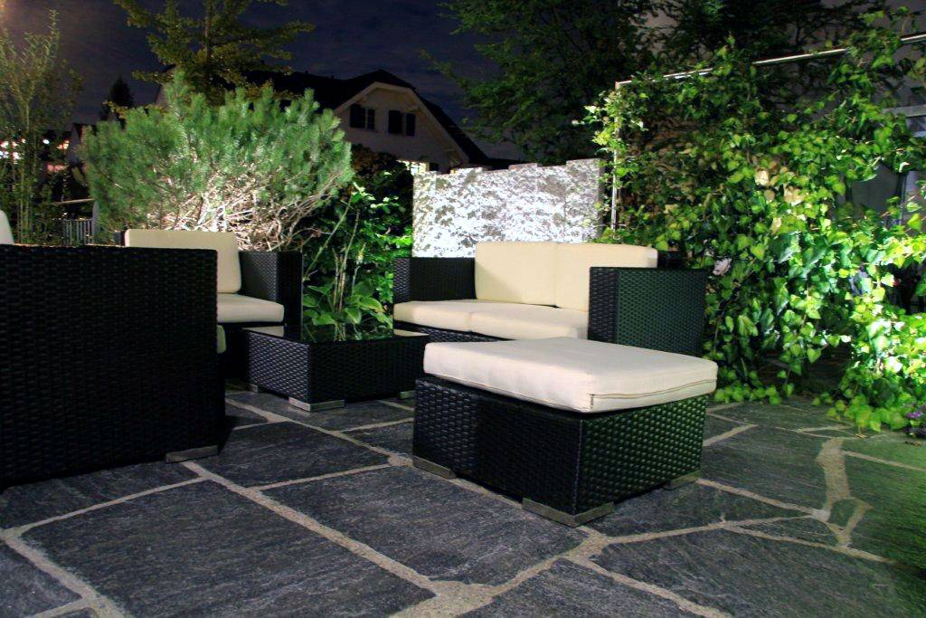 Die Stimmung des Lichts ist herzlich. Gerade in der Winterzeit mit kürzeren Tagen zeigt es den Garten von einer anderen Perspektive – der Garten strahlt auch im Dunkeln in Eleganz und Lebensfreude, wirkt beruhigend und harmonisch. Dank nächtlicher Beleuchtung haben Sie zwei Gartenansichten am selben Standort, denn zwischen Sonne und Kunstlicht gibt es verschiedene Kontraste. Wir beraten Sie gerne was in Ihrem Garten möglich ist.